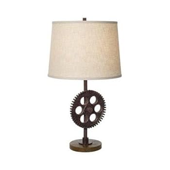 Pacific Coast Lighting 87-6659-68 Industrial Gear 1-Light Table Lamp, Poly Dark Rust Finish with Beige Fabric Shade. Reviewed by Affiliate Rating: